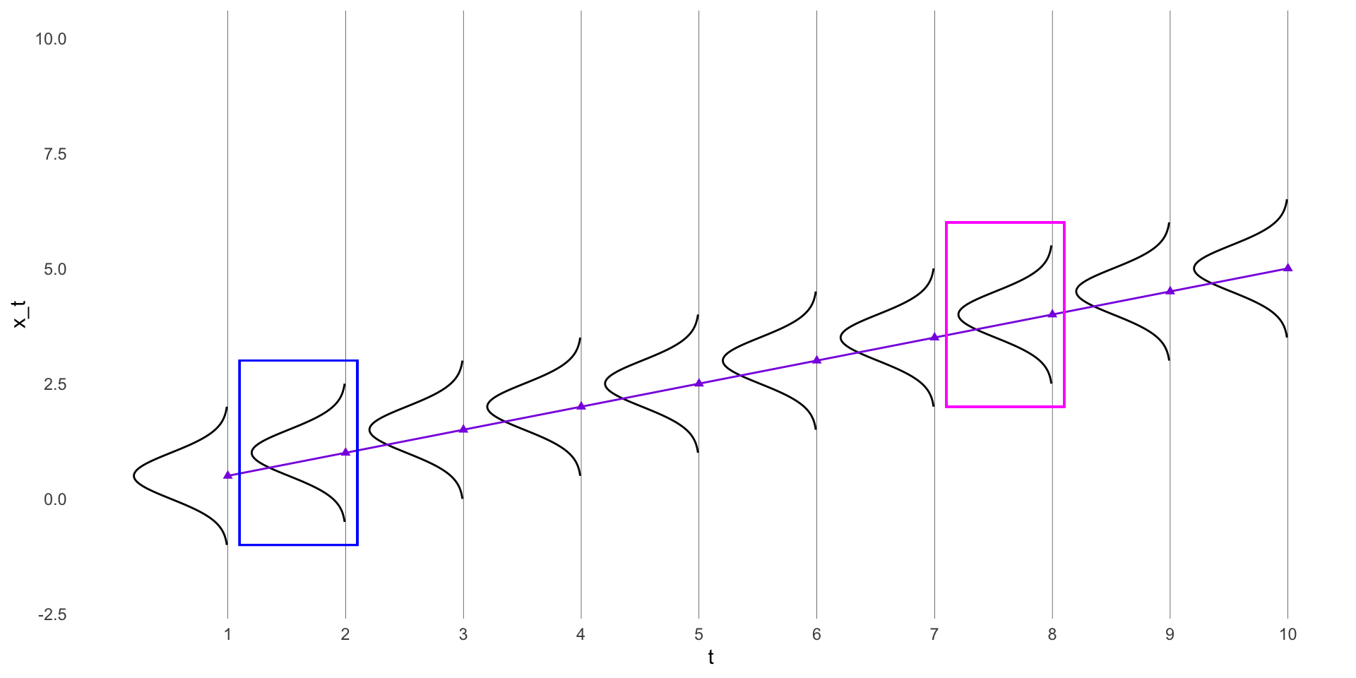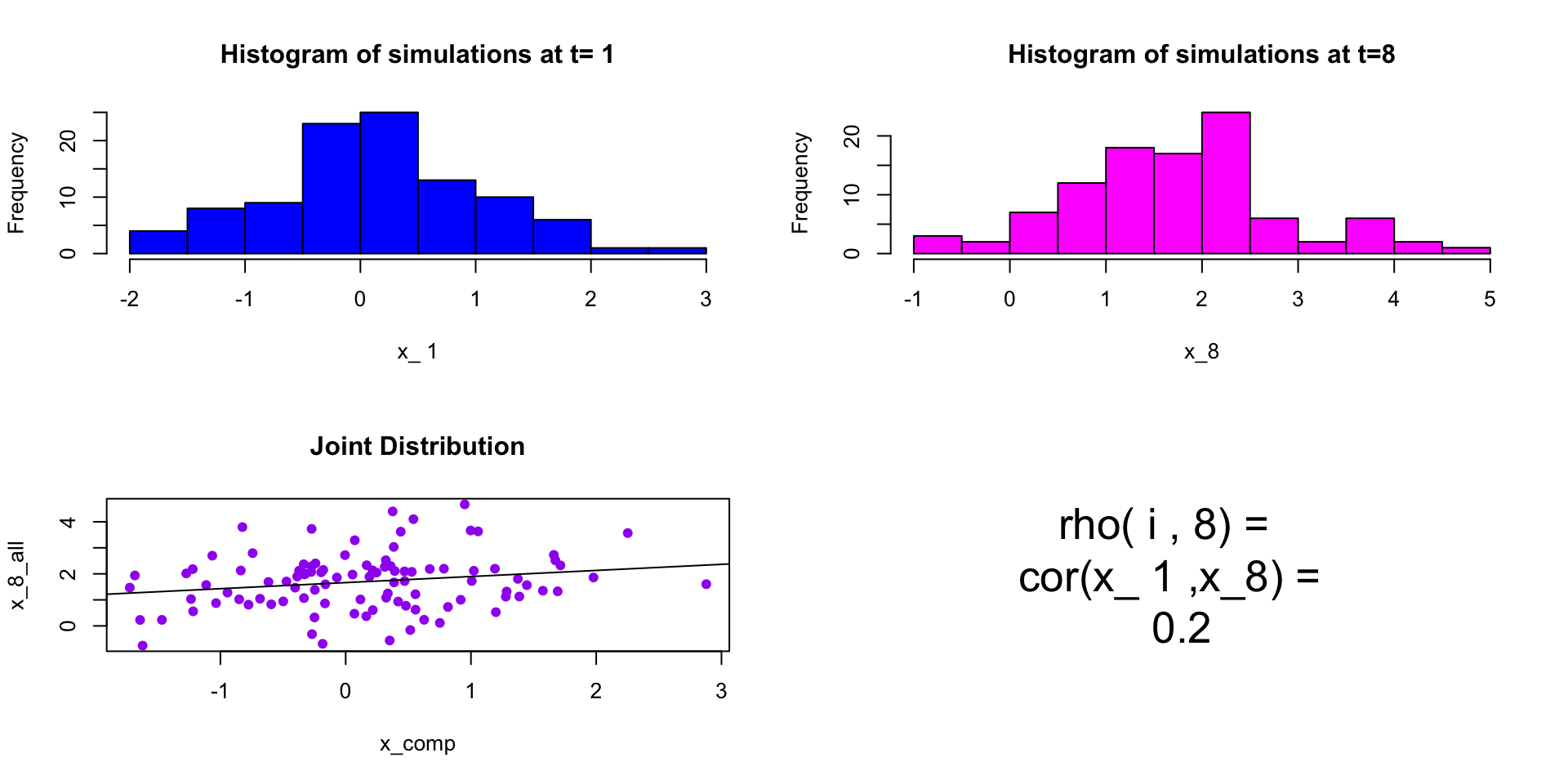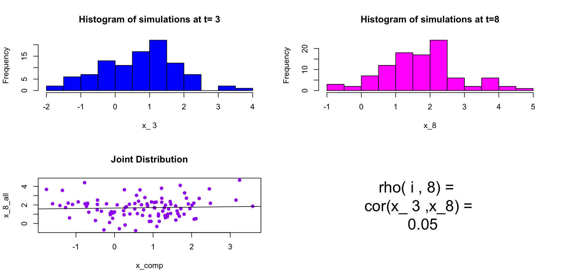 The equations are similar, with \(x_t\) being the same, \(\beta_1 = \beta\), \(\beta_0 = 0\), and \(w_t = y_t\), and \(z_t = t\). - What are the mean function and autocovariance function of \(x_t\)?